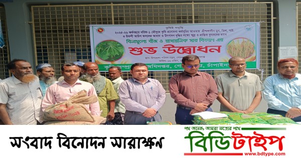 চাঁপাইনবাবগঞ্জের গোমস্তাপুরে ২০২৫-২৬ অর্থ বছরের খরিপ-১ মৌসুমে উফশী ধান ফসলের আবাদ ও উৎপাদন বৃদ্ধির লক্ষ্যে কৃষি প্রণোদনা কর্মসূচির আওতায় ক্ষুদ্র ও প্রান্তিক কৃষকের মাঝে বিনামূল্যে রোপা আমন ধানের বীজ, তিল ও মুগ ডালের বীজ এবং রাসায়নিক সার বিতরণ করা হয়েছে।