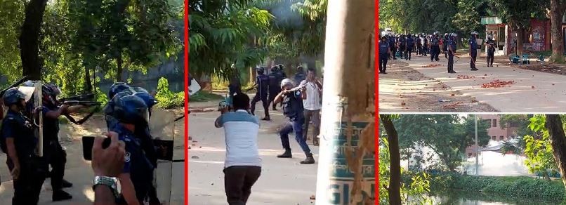 শিক্ষার্থীদের ছত্রভঙ্গ করতে টিয়ারশেল নিক্ষেপ শুরু করেছে পুলিশ। এতে পুলিশের পাল্টাপাল্টি ধাওয়ার ঘটনা ঘটেছে। শোনা যাচ্ছে গুলির শব্দ আজ বুধবার দুপুর থেকেই মুখোমুখি অবস্থানে ছিল পুলিশ-শিক্ষার্থীরা।