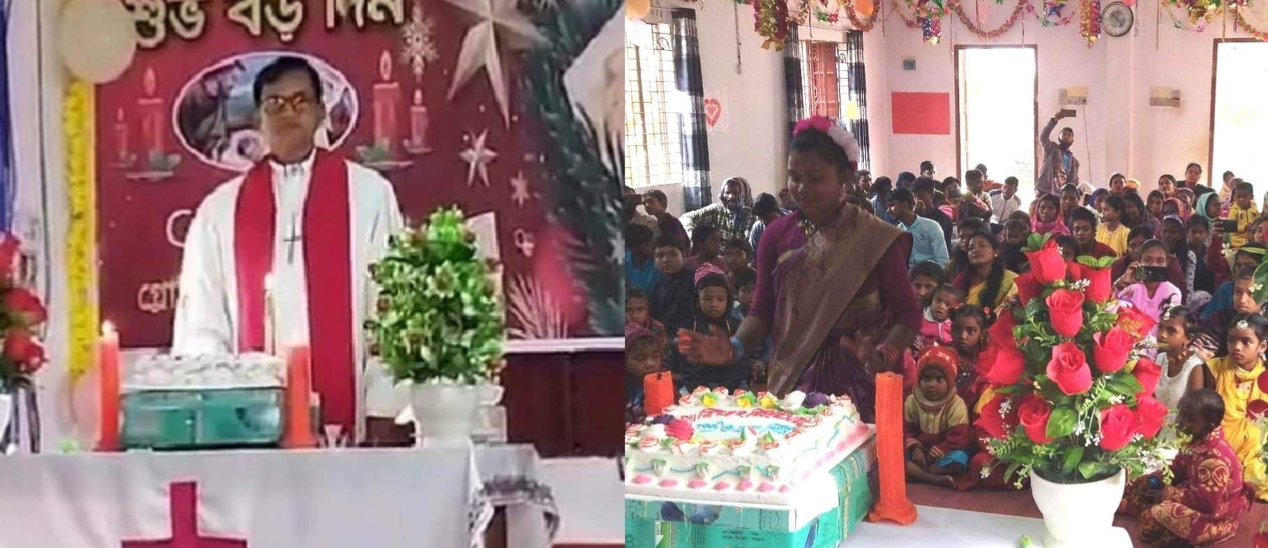 নওগাঁ সাপাহারে ফুলে ফুলে সু সজ্জিত হয়ে উৎসব-আনন্দ আয়োজন আর প্রার্থনার মধ্য দিয়ে কেক কেঁটে খ্রিস্টধর্মের অনুসারীরা উদযাপন করছে যিশুখ্রিস্টের জন্মতিথি বড়দিন।