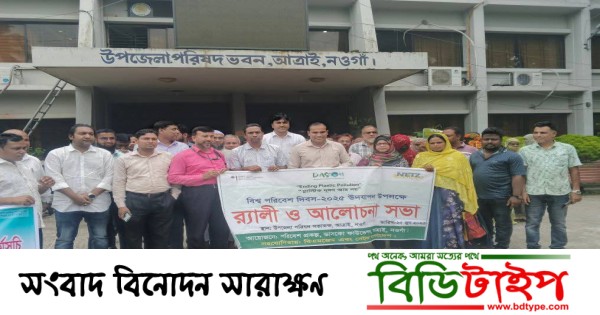 নওগাঁর আত্রাইয়ে পরিবেশ প্রকল্প ডাসকো ফাউন্ডেশনের আয়োজনে বুধবার (২৫ জুন) দুপুর সাড়ে ১২টায় বিশ্ব পরিবেশ দিবস উদযাপন করা হয়েছে।এ উপলক্ষে উপজেলা পরিষদের মেইন গেটের সামনে মানববন্ধন শেষে উপজেলা পরিষদ চত্বর থেকে একটি র্যালী বের হয়ে উপজেলার প্রধান প্রধান সড়ক প্রদক্ষিণ করে। পরে উপজেলা পরিষদ সভাকক্ষে আলোচনা সভা অনুষ্ঠিত হয়।