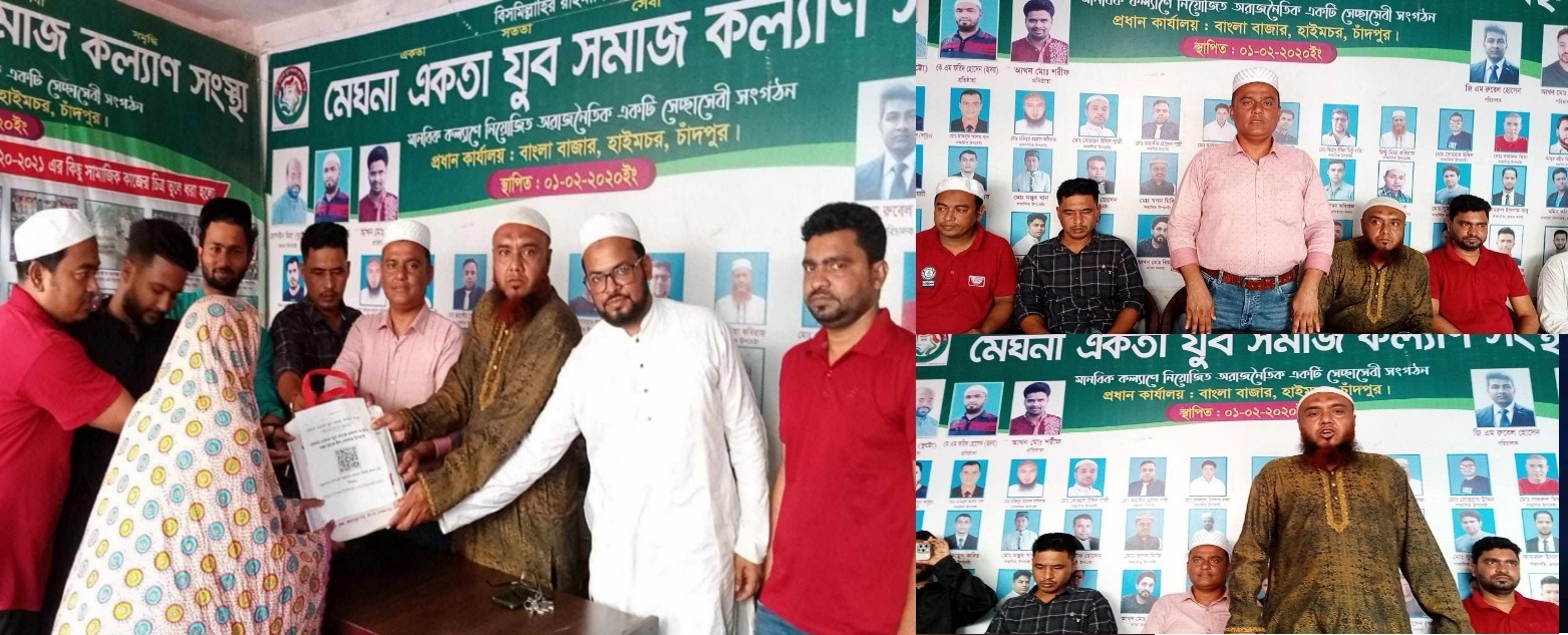 একতা সততা সেবা সমৃদ্ধি এই স্লোগানকে সামনে রেখে আর্তমানবতার সেবায় নিয়োজিত চাঁদপুর-হাইমচরের ঐতিহ্যবাহী অরাজনৈতিক সামাজিক স্বেচ্ছাসেবী সংগঠন মেঘনা একতা যুব সমাজ কল্যাণ সংস্থা'র পক্ষ থেকে সুবিধাবঞ্চিত খেটে খাওয়া মানুষের মাঝে ঈদের নতুন পোশাক ও ঈদ উপহার বিতরণ করা হয়।
